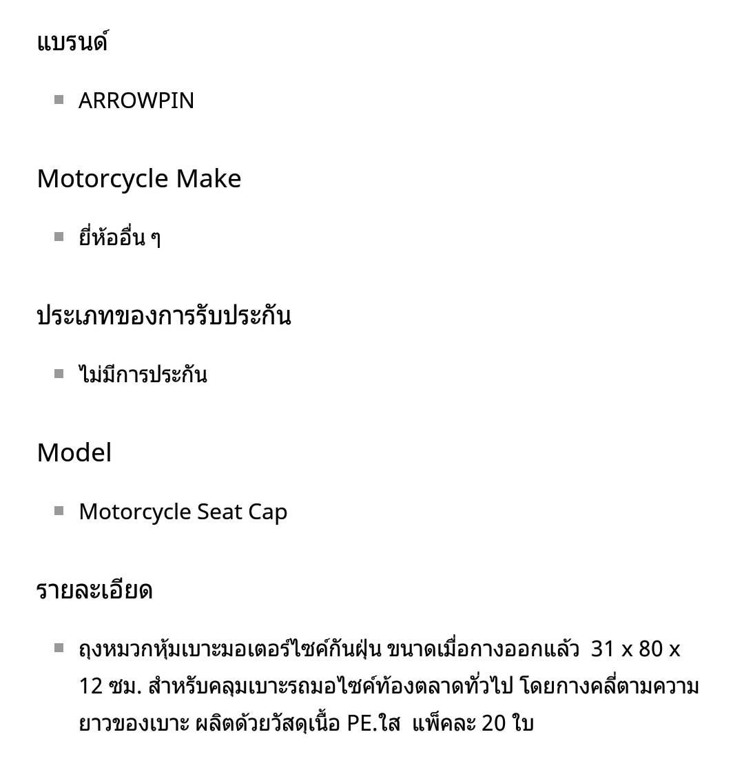 ถุงพลาสติกคลุมเบาะรถมอเตอร์ไซค์